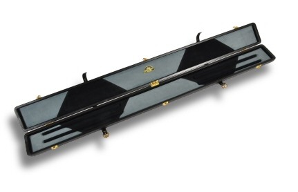 Handgemachter Koffer aus echtem Leder mit gepolsterter Veloursleder Innenverkleidung für 3/4-geteilte Queues mit Platz für Verlängerungen, Kreiden und sonstiger Ausstattung.