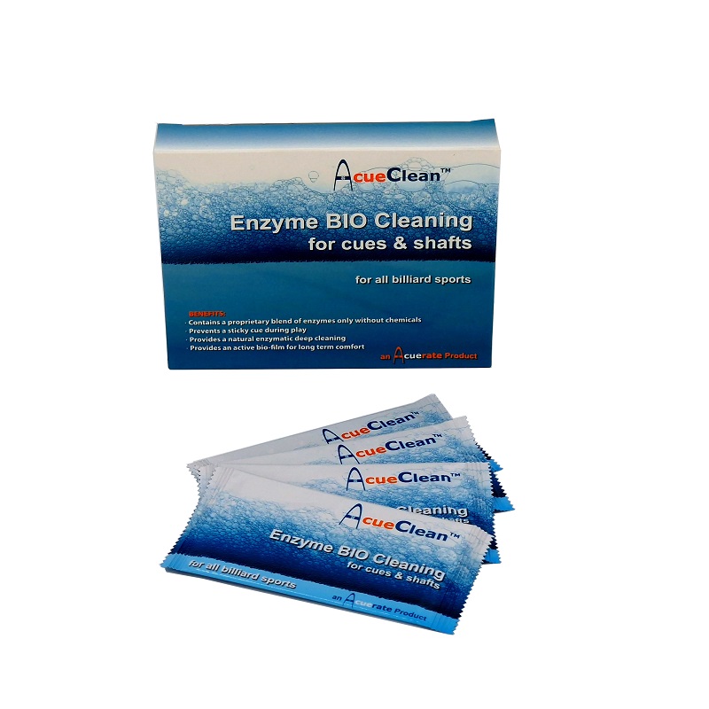 Acuerate hat feuchte Tücher mit Enzymen entwickelt, um das Holz der Queues tiefer zu reinigen als alles andere, daß derzeit auf dem Markt ist!