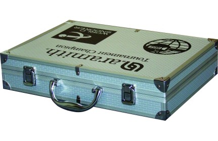 Der silberne Aluminiumkoffer schützt Ihre Kugeln und erleichtert den Transport.