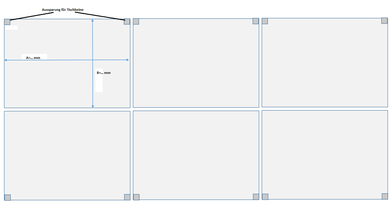 WICHTIG: Da es viele verschiedene Unterkonstruktionen (Unterbau auf dem die Schieferplatten aufliegen) bei Snookertischen gibt, werden die einzelnen Heiz- und Isolierelemente passgenau auf Ihren Snookertisch zugeschnitten. Dafür brauchen wir von Ihnen die genauen Maße der Freiräume zwischen den Holzbalken des Untergestells Ihres Tisches. Also die Freiräume im inneren des Unterbaus, wo Sie von unten die Schieferplatten sehen können. Wir leiten diese Maße dann an den Hersteller weiter ( Siehe drittes Bild. Länge A und Länge B und die Aussparungen für die Tischbeine. Bitte für alle Felder).