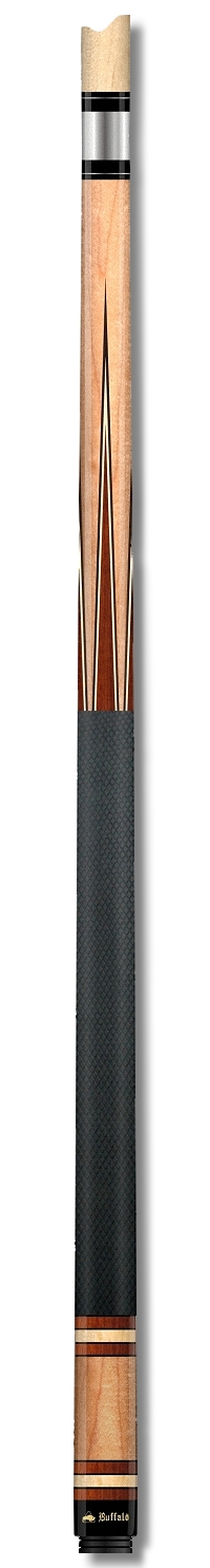 Mit dem neuen Modell BU-5 aus der Serie „Ultimate Pool“ präsentiert Buffalo ein hochwertiges Profi-Queue aus gut abgelagertem Vogelaugenahorn mit dezentem Dekor und attraktiven Inlays. Durch die farbige Beizung kommt die wertvolle Maserung besonders schön zur Geltung. Aber alles entscheidend sind die Spieleigenschaften. Daher wurde bei dem Oberteil der unter Profispielern beliebte „konische“ Schliff angewendet. Dadurch ist das Oberteil zwar weiterhin flexibel, aber vom Härtegrad eher als hart einzustufen. Der Durchmesser liegt bei 12,75 mm, so wie er zur Zeit von vielen Profispielern bevorzugt wird. Der Buffalo „Ultimate-Pool" ermöglicht perfektes Stellungsspiel und garantiert optimale Ballkontrolle. Die Griffwicklung besteht aus bestem Leder. Unser Fazit: Höchste Qualität bei einem Super Preis-Leistungs-Verhältnis.